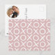 Detta stilrena vykort med texten "Hugs & Kisses" har ett enkelt mönster av "XOXO" i en avslappnad, penseldragsteknik. En mångsidig design som är perfekt för ett snabbt meddelande för att säga "hej", "tänker på dig" eller för att skicka "Glad Valentine's Day"-hälsningar, en födelsedagsgratulation eller tackkort. Du kan anpassa baksidan med ett favoritfoto och ett eget meddelande i trendig typsnittsstil. Tryckta mallfärger: matt dammig rosa och vit, eller anpassa bakgrundsfärgen med designverktyget.