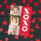 Det här lodräts multifotovalentinkort från Stacey Meacham har stor röd och vit xoxotyp med hjärtan i o:s.