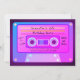 En 90-tums inspirerad design med en återbildskassett i färg, lila, shock rosa och blå audio i en övertoning. Med text som du kan använda för att ange information för en födelsedagsfest.