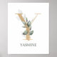 Brev Y monogram blommigt. Brev Y i guldbrun struktur accentuerad med grönt vattenfärgade löv, blommor och blommar från guld. Personlig med namn i matchande teckensnitt.