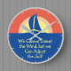 Yacht citerar på en väggklocka. Vi kan inte styra Vinden, men vi kan justera segeln! Solnedgång med Yacht Sailing klocka. Tanken på en segelbåt eller segelbänk kanske.