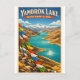Travel poster featuring Yamdrok Lake, Tibet, China, in a classic retro travel-poster style. Central focus on the sacred turquoise lake winding gracefully through vast Himalayan valleys, viewed from an elevated mountain pass with colorful Tibetan prayer flags flowing in the wind. Brilliant sunlight illuminates the lake’s vivid turquoise waters contrasted against rugged brown mountains and distant snow-capped peaks under a deep blue high-altitude sky. Harmonious color palette of turquoise blue, golden earth tones, snow white accents, and vibrant prayer-flag colors. Clean graphic illustration with subtle vintage grain texture. Bold vintage typography headline: “YAMDROK LAKE – SACRED WATERS OF TIBET”. Vertical 2:3 layout, high-resolution, print-ready.