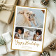 Det här vackra fotokollage-julkortet med 4 foton, Yappy Howlidays i ett modernt penselskript, en anpassade, namn och året skulle vara perfekt att skicka till dina vänner och familj. Alla kommer att få nya bilder av dig och dina hund från kärlek. Typsnitt är modernt och rent i guld. Om du vill göra det här kortet till ett eget kort väljer du Anpassa den här mallen, överför dina favoritfoton och skriv in dem i dina känslor, namn och året. Det är lätt toppen! Om bara några sekunder visas dina unika och fantastiska helgdagskort.
