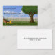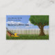 A custom business card displaying an illustration of a lawn mower in front of a white picket fence with a tree and blue sky's. This is perfect for someone who has a lawn care, landscaping or yard maintenance business. Easy to edit with your information.