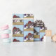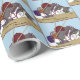 Grått och vit katt provar en ny hobby, men garnet har fått det bästa av honom.