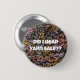Med den här knappen får du ett humoristiskt tryck på hatten, toten eller jacka. Bakgrunden är ett foto av garn av multifärgad. "Har jag hört att Garn säljs?" visas i vitt teckensnitt och kan enkelt anpassas. Original Photo - C. McGouldrick