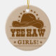 Yee Haw Girls Cowgirl Hat Design Julgransprydnad Keramik
