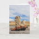 En vacker Wyoming himmel med moln som dansar genom sätter bakgrunden för detta spektakulära västerländska fotografi. Dessa slitna cowboystövlar har ett par specialdesignade mexikanska peso-sporar, komplett med "Yeeha"-bokstäver och läderremmar. Anpassa meddelandet inuti, eller lämna det som "Yeeha! Dags att kicka upp hälarna!". Perfekt för födelsedag, pensionering eller många andra tillfällen.