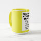 YELLOW single image 4:6 portrait aspect ratio frame Large custom Combo Mug for photo or logo, 15 oz., 3.4" diameter x 4.5" high, with YELLOW background single image frame (one central customizable design area) providing maximum coverage of the mug in YELLOW. See store for more templated font options. The background color has been chosen to closely resemble the combo mug inside and handle color but may not match exactly, due to the difference between printing and enamel tones.
