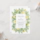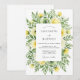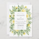 This design features a lush and airy arrangement of watercolor greenery and sunny blooms, perfect for a nature-inspired spring nuptial. The palette blends soft lemon hues with sage and moss green foliage against a crisp white backdrop. Delicate ranunculus and clusters of leafy ferns create a dense, organic border. This fresh and sophisticated aesthetic captures the essence of an outdoor woodland setting.