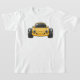 Cute yet aggressive compact toon racer design featuring glossy yellow tones, simple curved windows and friendly circle headlights. toon vehicle illustration, bold linework, gradient fills, rounded wheel forms, crisp centered composition, playful compact car motif.