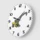 Keep track of your project timelines with this unique yellow wheeled excavator wall clock. Featuring a modern vector illustration of a heavy duty digger, this clock is a functional piece of decor for a child's bedroom, a home office, or a construction company breakroom. The clean industrial aesthetic and bright yellow accents make it an eye-catching focal point that complements a transportation or builder theme. This high-quality timepiece is an excellent gift for future engineers and anyone fascinated by the world of heavy equipment.
