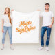 Radiate happiness with this "Made of Sunshine" graphic. Featuring cheerful script typography in sunny yellow and orange with sunburst accents, this design captures the warmth and joy of a bright summer day.