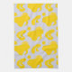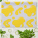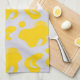 This kitchen towel features a lively pattern of organic yellow shapes scattered across a clean white background, creating a playful yet contemporary abstract aesthetic.