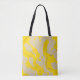 This tote bag features a flowing pattern of organic yellow swirls layered over soft beige and subtle gray accents, creating a smooth, contemporary abstract aesthetic.