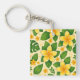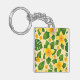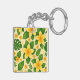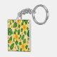 The design features a repeating floral pattern with large tropical-style flowers in warm yellow tones. Each flower has five smooth petals with soft gradient details and an orange outline that adds depth and clarity. The flowers are surrounded by rich green leaves in different shapes, including broad leaves and split-leaf forms, with visible veins for added texture. Small orange flowers are scattered between the larger elements, along with tiny circular dots that add decorative detail. The background is a light cream color, creating a soft contrast with the bright yellow flowers and deep green foliage. The illustration style is clean, bold, and playful, using flat colors and clear outlines.