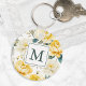 Yellow Watercolor Garden Flowers Monogrammed Nyckelring