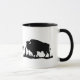 Det här keramiska kaffet mugg visas med ett konstgjort tryck på en buffel med Yellowstone-text. Black insida och handtag. Anpassa det här objektet eller köp som det är. Lagrar-bild