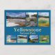 Vykort med foton tagna i nationalparken Yellowstone (Opalescent Bassäng, Dragons Mouth Vår, God Glory Bassäng, Clepsydra Geyser, Cistern Vår, Fjällhålsfloden och en älk).