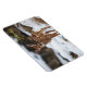 Magnet visas med ett foto av en vild hjort som krymper de vackra snöskogarna. Anpassa det här objektet eller köp som det är.