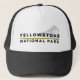 Yellowstone nationalparktext med bergdesign. Den Yellowstone nationalparken innehåller över 3500 tunnland av naturligt parkerar spridning över Wyoming, Idaho och Montana. Den sitter atop den vulkaniska Yellowstone calderaen och presenterar naturliga geysers.