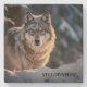 Sandstone-underlägg visas med ett fototryck av en vild varg i Yellowstone Park. Anpassa det här objektet eller köp som det är. Licensierad bild
