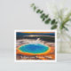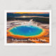 Vykort visas med ett vackert fototryck av den stora prismatiska termiska hetpotten i Yellowstone National Park.