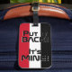 Yemen National Flagga Funny Patriotic Luggage Tag med Jemens nationella färg som täcker märkrns framsida. Lustigt text "Sätt tillbaka den!" Det är MINE" är skrivet över flagga färg. Anpassadet Text är fullt ut med funktionen "Anpassa den!". Andra sidan av märkrn är reserverad för din information. Den här roligten är Yemen Luggage Tag-numret som är perfektens följeslagare till din resväska och den vackra gåvan till vilken tillfälle som helst. © LänderAvVärlden