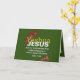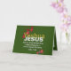 Stilfull julkort med kristen hälsning YESHUA JESUS med design i falska röda glitterkulor. YESHUA är skrivet med falsk guldtypografi mot en rik GRÖN bakgrund. Bibelverset är Johannes 1:14 - ORDET BLEV KÖTT. Frasen och hänvisningen till Skriften är Anpassningsbar, så att du kan ersätta den med din egen text. Du kan också anpassa ditt meddelande på insidan. Välj bland ett brett urval av kristna juldesigns från Berean Designs.