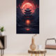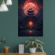 Yin och Yang Bridge och Temple i Cyberpunk Neon Poster