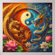 Yin Yang med drakar och fönix bland frodig blomnin Poster
