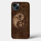 Den här vackra yin-yang-designen har två stiliserade stambaserade ro. Intrikera snurrar och linjer dekorerar båda sidor av denna traditionella symbol som skapar ett känsligt mönster. De två blommorna flödar från grund på trottoaren på vardera sidan med löv som växer från stjälkarna. Grova struktur och naturligt färg ge vid mönster kan se ut som om man slungats bort från åldras. Detta unika blommönster är ett slående exempel på denna gamla symbol för naturbalansen.
