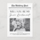 Detta vykort med förslagsbrev är det perfekta sättet att fråga "Vill du vara min brudtjej?". Det har en minimalistisk svart-vit stil med tidningshuvud "The Wedding Post" och ett fotografi av en brud som håller i en blomsterbukett (du kan behålla det här fotot eller byta ut det mot ett eget!). Med en elegant och enkel design lägger det till en personlig touch till dina förfrågningar till bröllopståget. Det är lätt att anpassa med din brudtjejs namn och ett personligt meddelande.