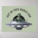 Lås upp kosmisk lugn med den här poster som innehåller en utomjording i en serene yoga-position inuti UFO. Med arm som är utdragen och fötterna i en hoppande ställning förkroppsligar detta utomlands balansen och lugnet i perfekten, och flyter genom rymden i ett fredligt tillstånd. Uttrycket "Ut ur den här World Zen" ger en lekfull fingervisning som påminner dig om att hitta inre fred oavsett vart resan tar dig. Denna kosmisk-tematiska poster är perfekt för yoghis, meditation älskare, och alla som vill påminna om att stanna i ett upptaget universum.