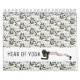 Kalender med olika innehåll varje månad med silhuetter i grönt, rosa, svart och ett blommönster. Bara för söt konst, inte för att träna biet.