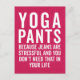 "Yoga byxor: För att jeans är stressande och du behöver inte det i ditt liv", roligt citat.