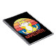 Färgfull illustration med "Name owste"-textdesign och söt Kawaii-katt gör yoga på färglös, rand baksida
