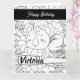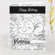 Cute Personlig Coloring Birthday Card with botanical grey and Koala Stretching