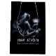 Modern Yoga Fitness Studio / Meditation Instructor / Personal Trainer / Life Coach / Healer / Reiki Master / Massage Therapy Anpassningsbar Gift Bags Template - En kvinna i eterisk form av ljus. Hon sitter i Easy Pose eller Sukhasana, en gemensam hållning för yoga och meditation. Kvinnan håller en glödande vit lotus blomma i handen. Lotus-blomman är en symbol för helig i många religioner och kulturer som representerar renhet, upplysning, förlossning och skönhet. Det har också ett samband med yoga och meditation, eftersom det ofta används som säte för gudom eller som en koncentrationspunkt. Den vita lotus blomman betyder kvinnans inre fred och harmoni. "När du hittar fred inom dig själv blir du den typ av person som kan leva i fred med andra." - Fredspilgrim -