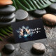 Modern Yoga Fitness Studio / Meditation Instructor / Personal Trainer / Life Coach / Healer / Reiki Master / Massage Therapy Gift Certificate Template - En kvinna sitter i Sukhasana, även känd som Easy Pose, som är en gemensam hållning för yoga och meditation. Hon är omgiven av en eeral, roterande dimma som avger en mjuk glöd. Misten bildar en abstrakt, blommliknande form runt henne. Mjälten och blomman symboliserar hennes energi från andlig och naturanknytning. Lotus-blomman är en symbol för helig i många religioner och kulturer som representerar renhet, upplysning, förlossning och skönhet. Lotus-blomman är också kopplad till yoga och meditation, eftersom den ofta används som säte för gudom eller som en brännpunkt för koncentration. Den vita lotus blomman i bilden betecknar hennes inre fred och harmoni.