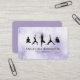 Yoga-instruktörernas affärskort med en jämn lila marmor-bakgrund, silhouette yoga-possor, ditt namn, din befattning och kontaktinformation.