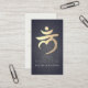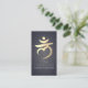 Yoga Meditation-instruktor - visitkortsmall - Elegant White and Faux Gold Foil Yoga Meditation Magic Root Chakra Symbol/Muladhara Chakra Symbol/Seed Mantra LAM Sanskrit Brev på marinblå bakgrund.