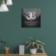 Yoga Studio Meditation Instructor / Life Coach / Healer / Reiki Master / Massage Therapy Cites Poster - Modern Black & Silver Yoga Meditation Pose / Träd Pose (VRksansana) och OM Symbol på Black Leather Struktur Background. "När du hittar fred inom dig själv blir du den typ av person som kan leva i fred med andra."