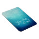 En magnet med en cool text som säger: Yoga läker själen. Designad med ett vackert blått halvmandalamönster med en bakgrundsfärg som gradvis övergår från ljus havsblå till mörk marinblå. Lugn och stillsam.