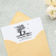 Denna "Returadress" gummi frimärke har ett träd med en yoga person, en katt, namn och adress.