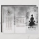 Modern Yoga Fitness Studio / Meditation Instructor / Personal Trainer / Life Coach / Healer / Reiki Master / Massage Therapy Tri-Fold Brochures Template - Elegant Black and White Abstrakt Calligraphy Brush Stroke Bläck Painting - a Silhouette of a Women in a Yoga Lotus Meditation Pose (Lotus Position / Padmasana). Person. Posture och omgivande miljö väcker känslor av lugn, fokus och inre fred. "När du hittar fred inom dig själv blir du den typ av person som kan leva i fred med andra" - fredspilgrim -.