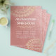 Yoga Fitness Studio / Meditation Instructor / Personal Trainer / Life Coach / Healer / Reiki Master / Massage Therapy Open House Flyer Template - Modern Chic Faux Gold Foil Blommigt Mandala Symbols on Rosa Gold Foil Background.