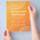 Yoga Fitness Studio / Meditation Instructor / Personal Trainer / Life Coach / Healer / Reiki Master / Massage Therapy Open House Flyer Template - Modern Chic Faux Gold Foil Blommigt Mandala Symbols på Orange Gradient Färg Background.