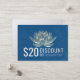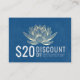 Yoga Studio Meditation Instructor / Life Coach / Healer / Reiki Master / Massage Therapy Discount Coupon Loyalty / Gift Certificate Card Templates - Modern Elegant Faux Guld Lotus on PANTONE 19-4052 TCX Classic Blue Färg Grunge Background.