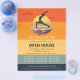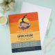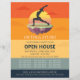 Yoga Fitness Studio / Meditation Instructor / Personal Trainer / Life Coach / Healer / Reiki Master / Massage Therapy Open House Flyer Template - Elegant Yoga Meditation Pose / Crescent måne pose / Crescent Lunge Pose / halv Måne Pose (Ardha Chandrasana) / Surya Namaskar / Anjaneyasana Pose / Sol Salutation Wose / 1 Yoga Pose / Yoga Måne Salutation / Chandra Namaskar / Silhouette på Fantasy Island Flytande i Luft vid Sunset.
